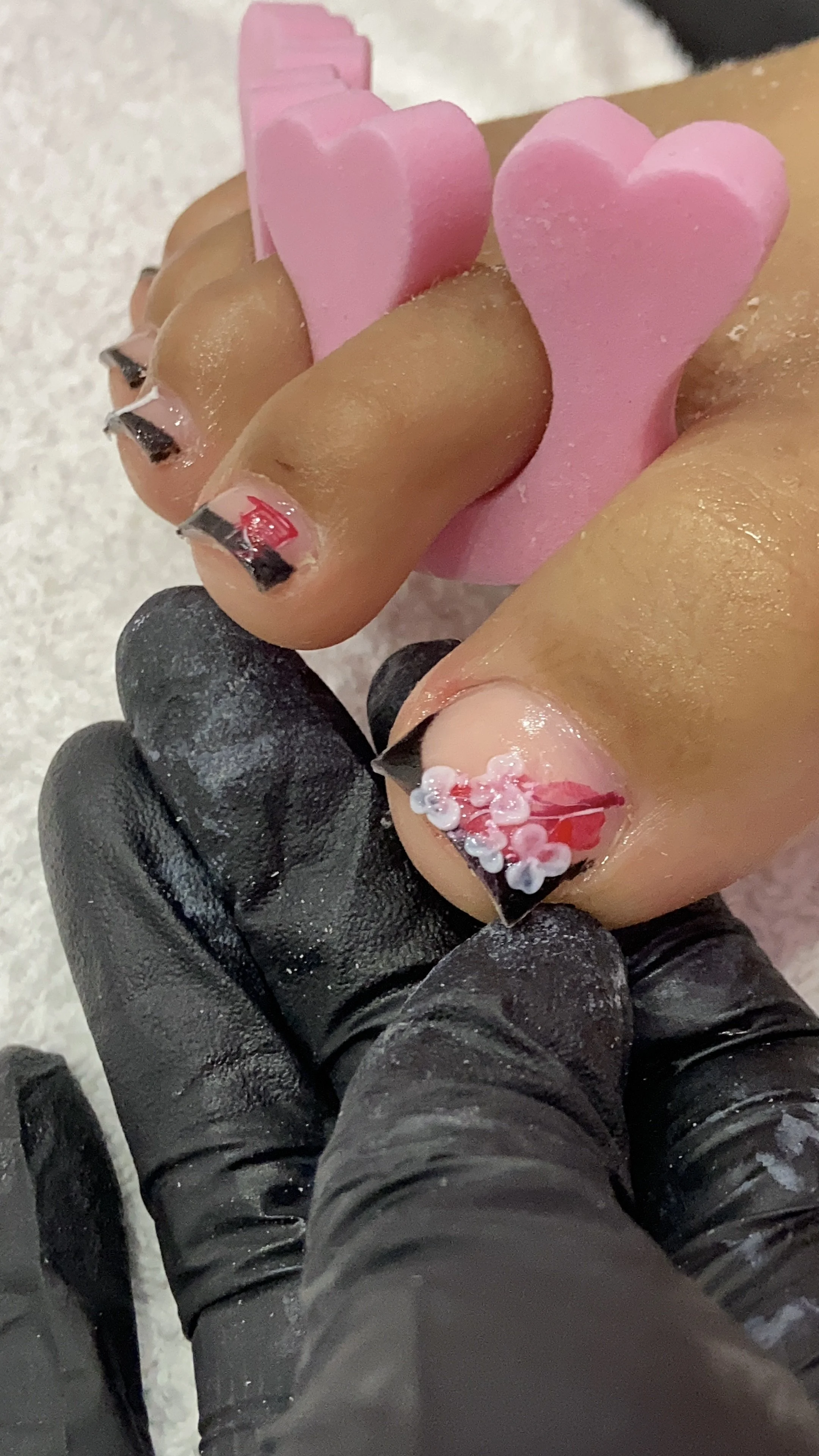 Toe enhancements aren’t one-size-fits-all. We specialize in building soft-looking, balanced acrylic or gel extensions that mimic your natural nails and won’t feel bulky or uncomfortable. Perfect for vacation, photo shoots, or elevating your everyday look—without compromising your nail health.